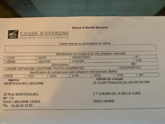 Votre chèque ou le virement d’un montant de 31€ doit être libellé à l’ordre du Club Français du Sacré de Birmanie ou CFSBi.