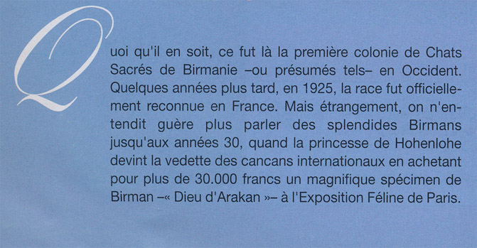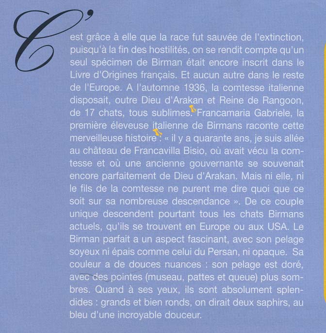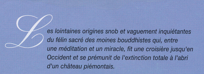 Il y a la légende du Sacré de Birmanie, réelle ou sublimée par tant de grâce