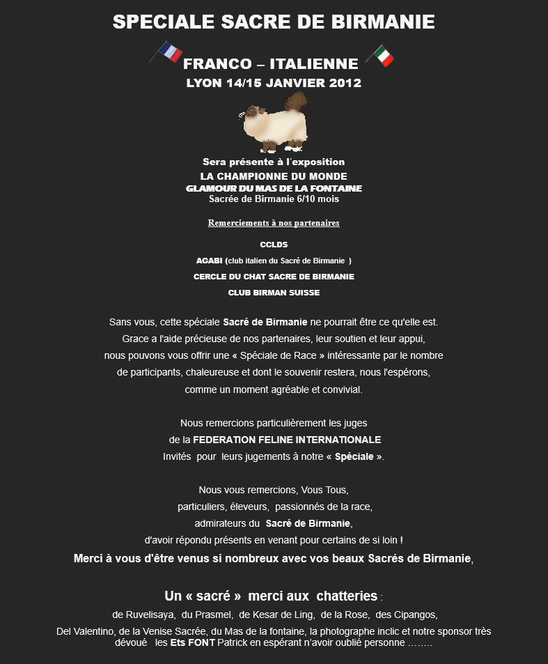 Merci à vous d’être venus si nombreux avec vos beaux Sacrés de Birmanie.